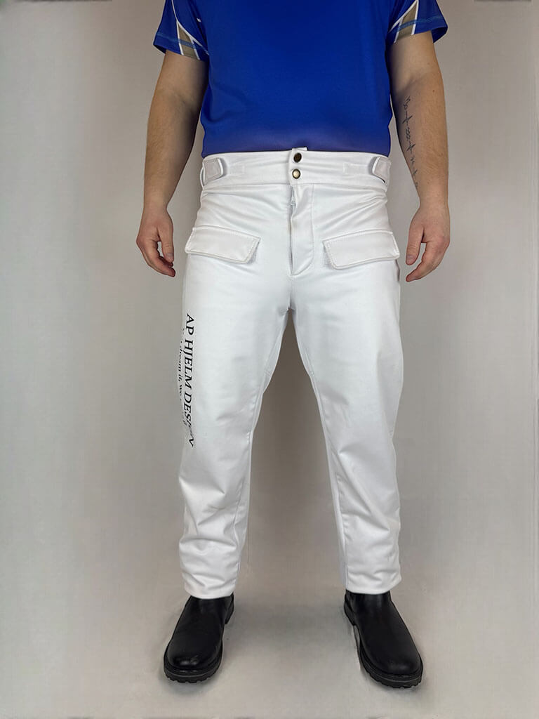 Dessa funktionella körbyxor för män är både vindtäta och vattentäta, samtidigt som de andas, vilket säkerställer maximal komfort under körning. De har skydd över dragkedjan, justering vid fot och höfter, men inga hängslen. En flexibel och praktisk lösning för travsport. Alla logotyper, namn och designelement ingår i priset.