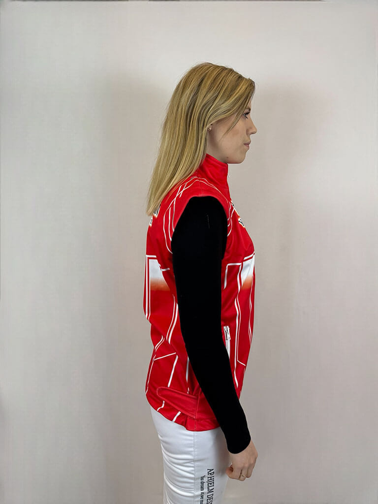 Det bästa är att västen kan designas precis som du vill – så att den matchar din egen kostym eller skapar ett enhetligt uttryck för stallpersonalen. En idealisk lösning för löpare som vill ha funktionalitet, personlig stil och ett professionellt teamutseende, oavsett väder.