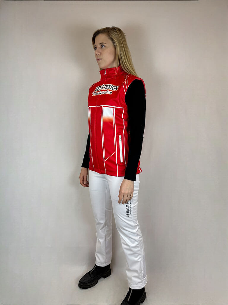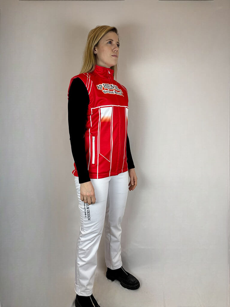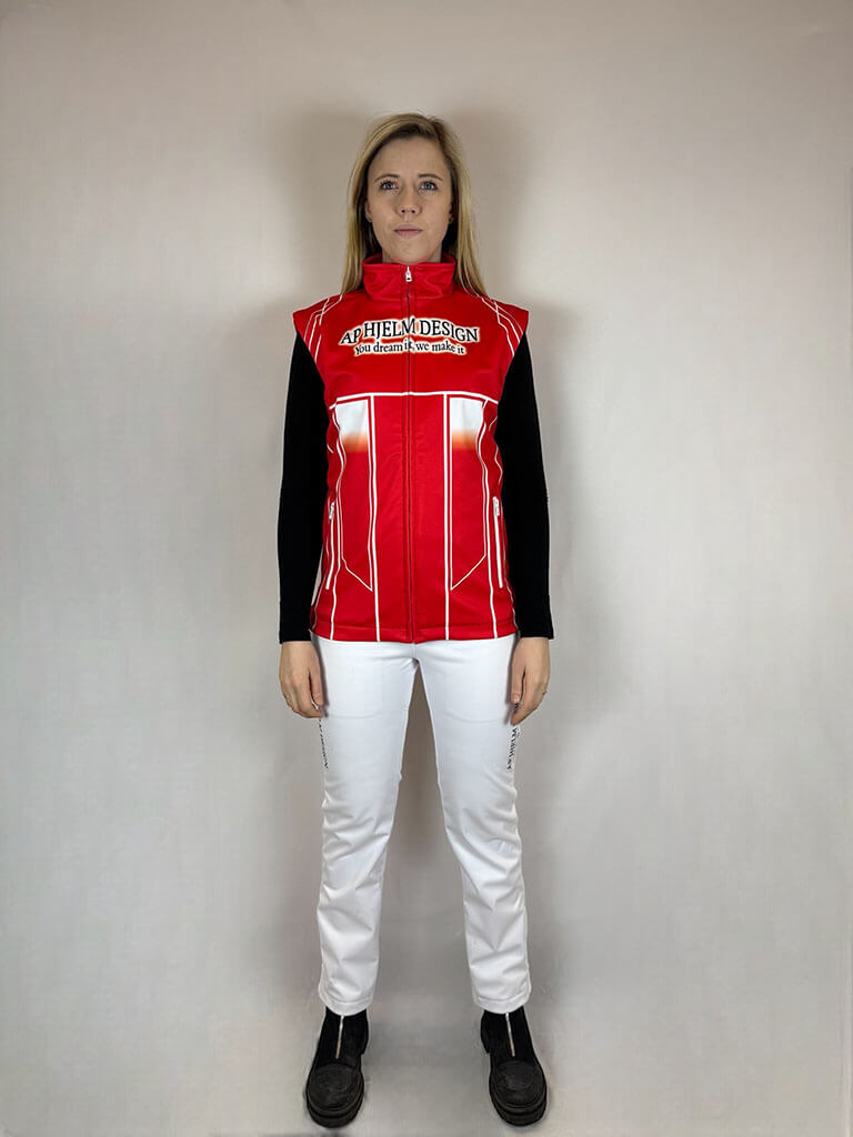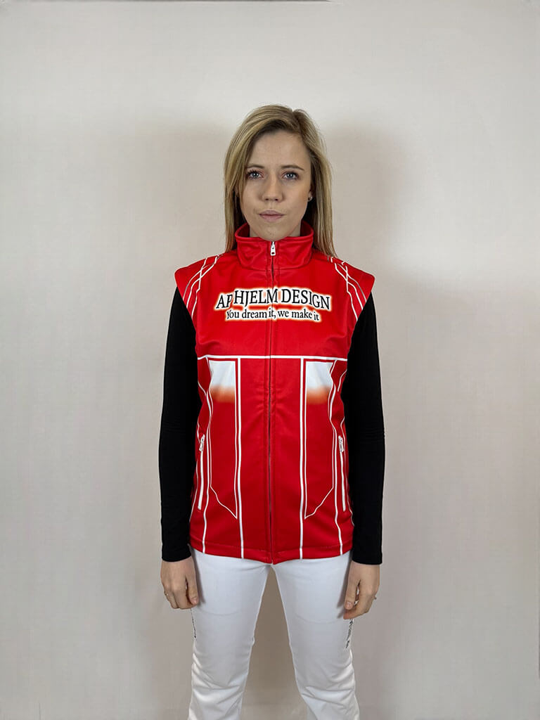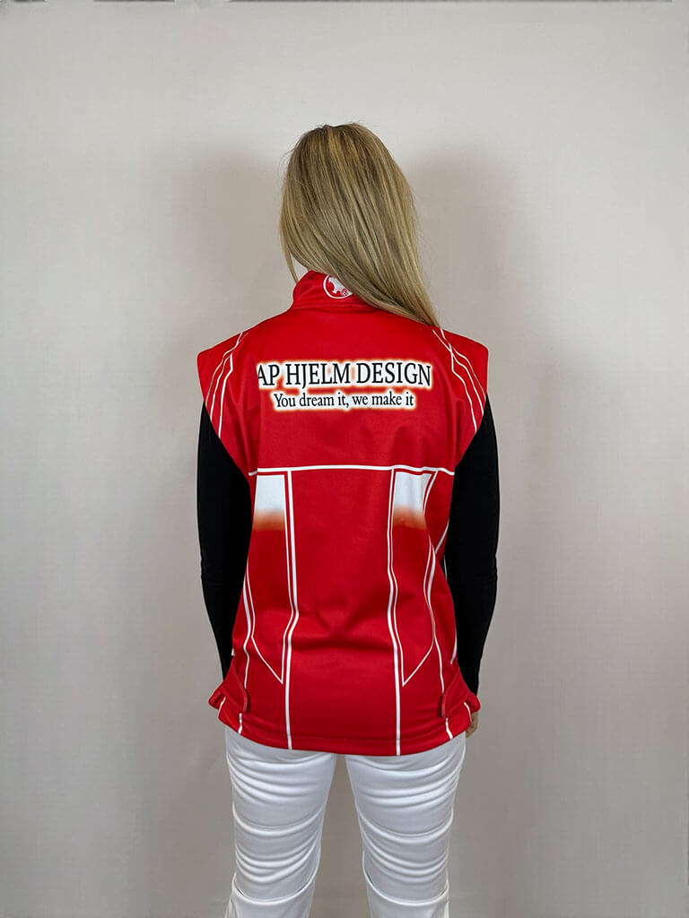 Damfleeceväst – kombinerar mjuk fleece på insidan med en vind- och vattentät softshell-utsida. Kan designas för att matcha din outfit eller stallpersonalen för en enhetlig look. Perfekt för travbanan och stallarbetet där komfort och skydd mot väder och vind är avgörande.