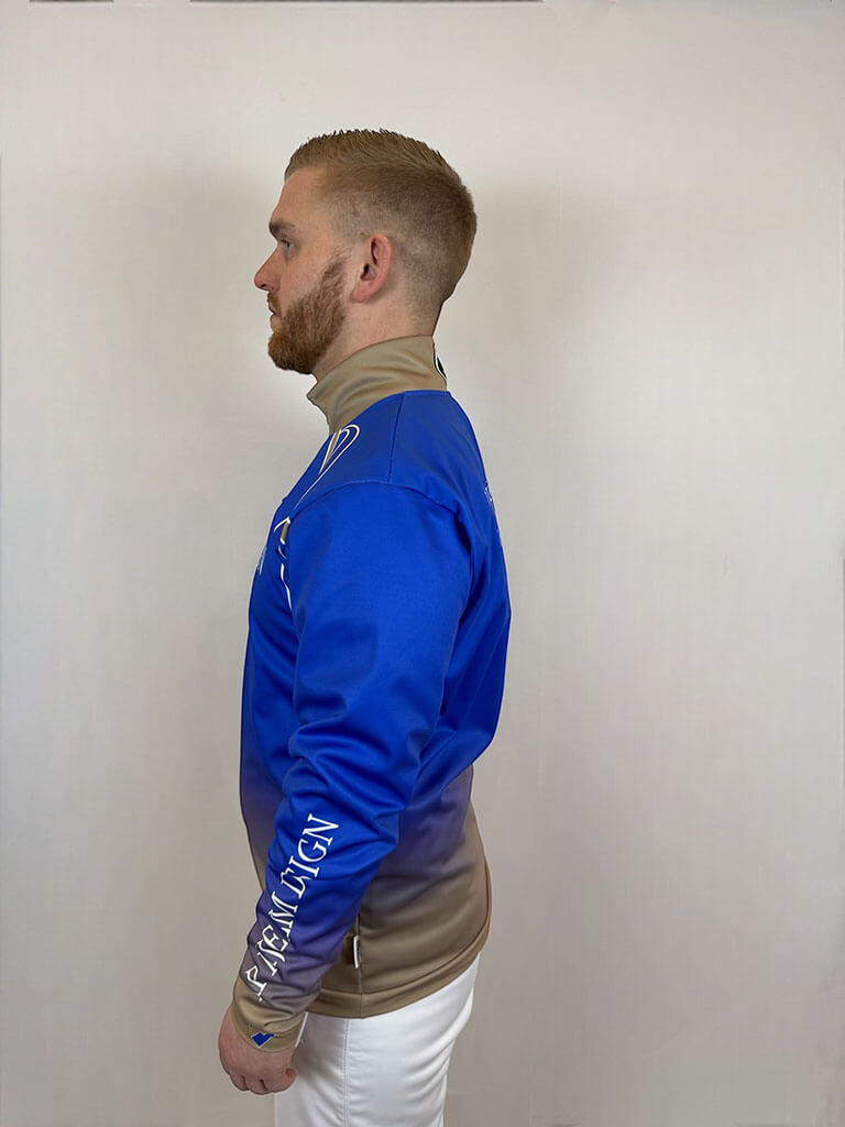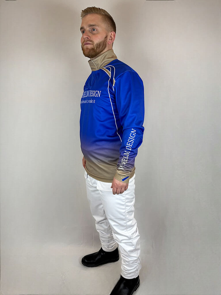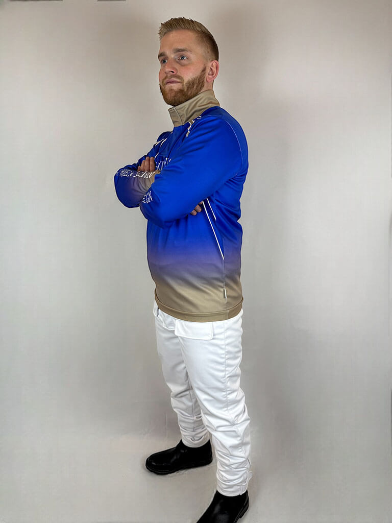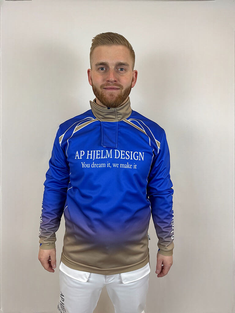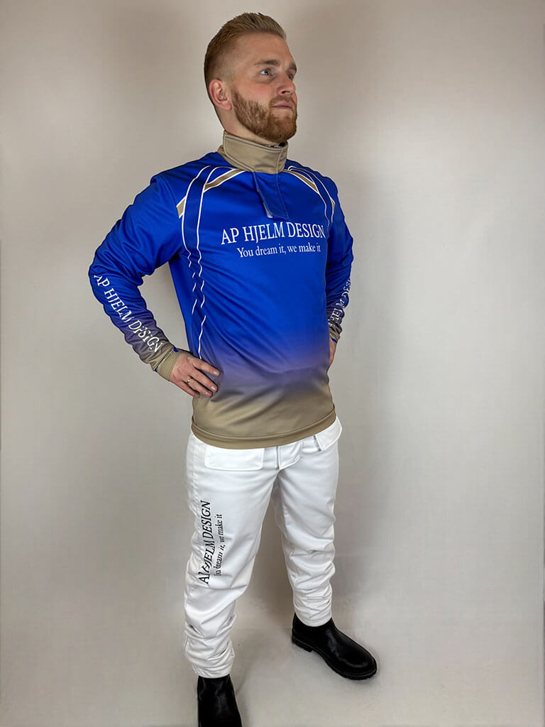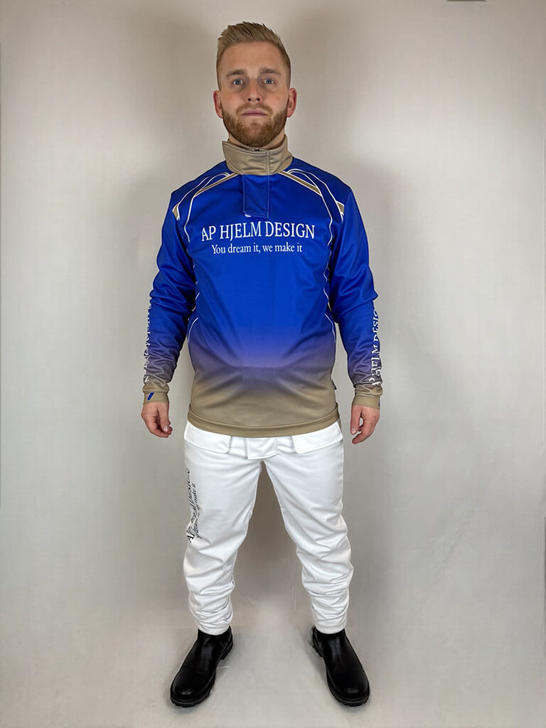 Softshell Driver Shirt för män – funktionell och snygg pullover designad för travare. Halvdragkedja med kardborrstängning ger extra skydd mot vind och väder. Tillverkad i vind- och vattentätt material som andas. Kan designas efter egna önskemål för ett proffsigt utseende. Alla logotyper, namn och designelement ingår i priset.