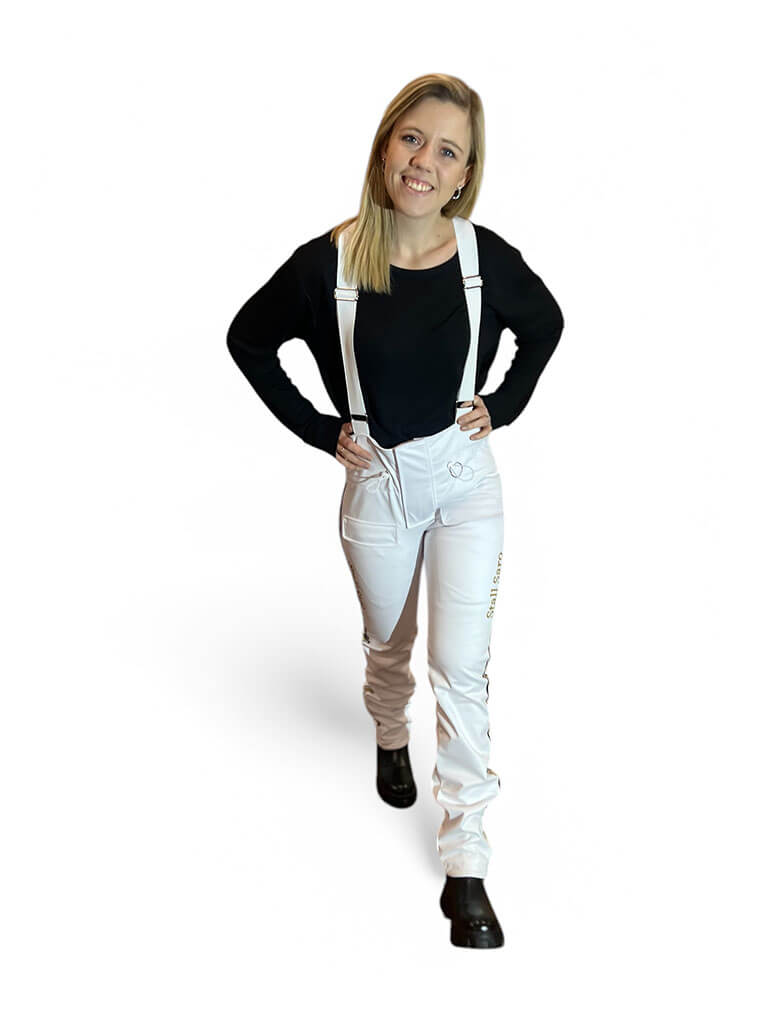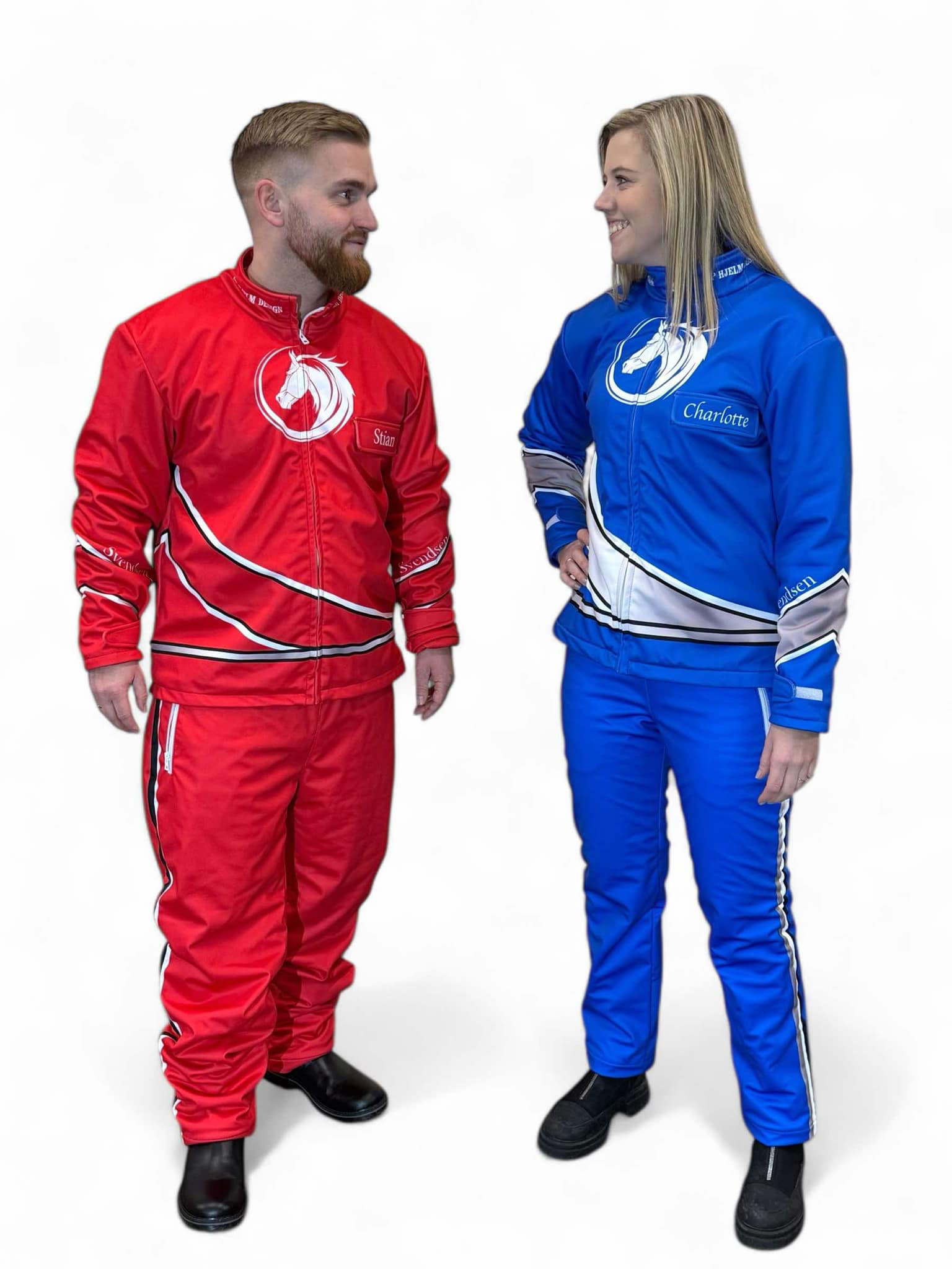Setet har en feminin passform och kan designas efter dina önskemål, antingen i dina egna färger eller som en del av ett gemensamt ladugårdsset i ägarfärger, så hela teamet framstår som stilrent och proffsigt. Perfekt för kvinnor i travsport som vill ha både komfort och ett enhetligt utseende. Alla logotyper, namn och designelement ingår i priset.