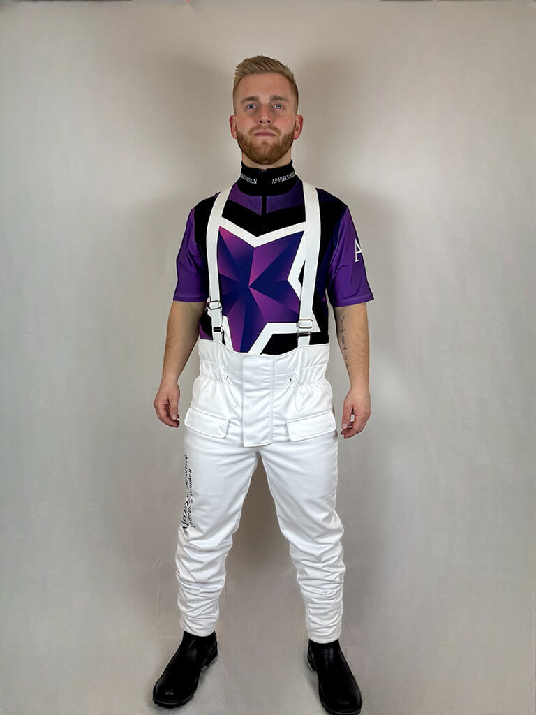 Detta vinterstallset för män är designat för att hålla dig varm och bekväm, även under de kallaste månaderna. Med extra foder ger den ett effektivt skydd mot temperaturer ner till -20°C. Setet kan designas i dina egna färger eller som ett komplett stallset i ägarfärger, så att du kan framstå som stilren och professionell både i stallet och på banan.