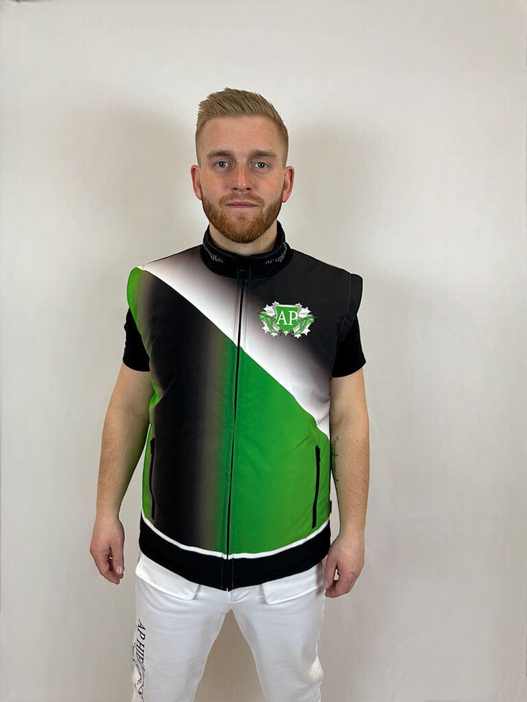 Vinterversionen av stallsetet för män är extra fodrad för optimal värme, även i temperaturer ner till -20°C. Kan designas i egna färger eller som ett komplett stallset i ägarens färger. Perfekt för både stallarbete och utseende på banan – oavsett väder.